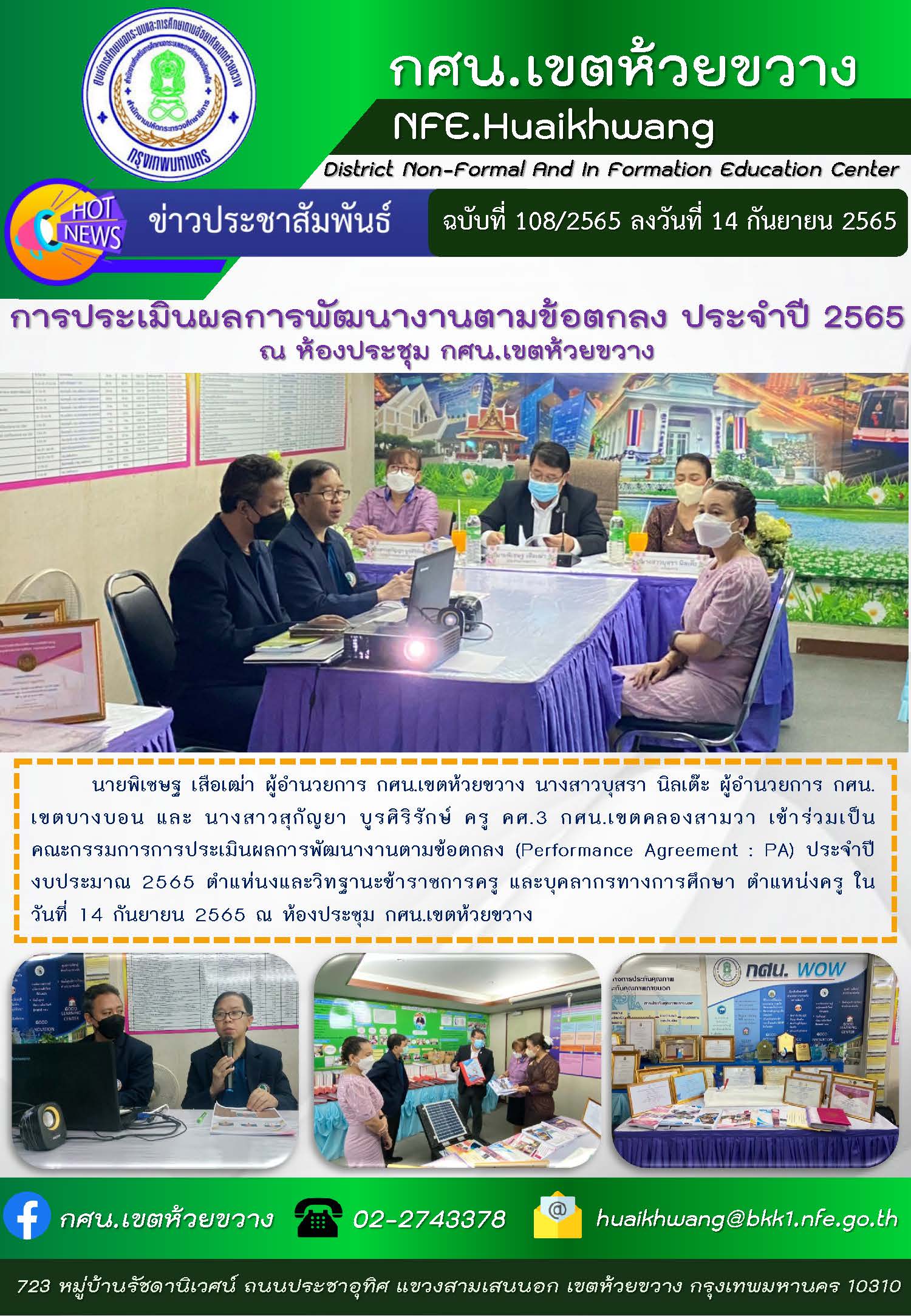 นายพิเชษฐ เสือเฒ่า ผู้อำนวยการ กศน.เขตห้วยขวาง นางสาวบุสรา นิลเต๊ะ ผู้อำนวยการ กศน.เขตบางบอน และ นางสาวสุกัญยา บูรศิริรักษ์ ครู คศ.3 กศน.เขตคลองสามวา เข้าร่วมเป็นคณะกรรมการการประเมินผลการพัฒนางานตามข้อตกลง (Performance Agreement : PA) ประจำปีงบประมาณ 2565 ตำแห่นงและวิทฐานะข้าราชการครู และบุคลากรทางการศึกษา ตำแหน่งครู ในวันที่ 14 กันยายน 2565 ณ ห้องประชุม กศน.เขตห้วยขวาง