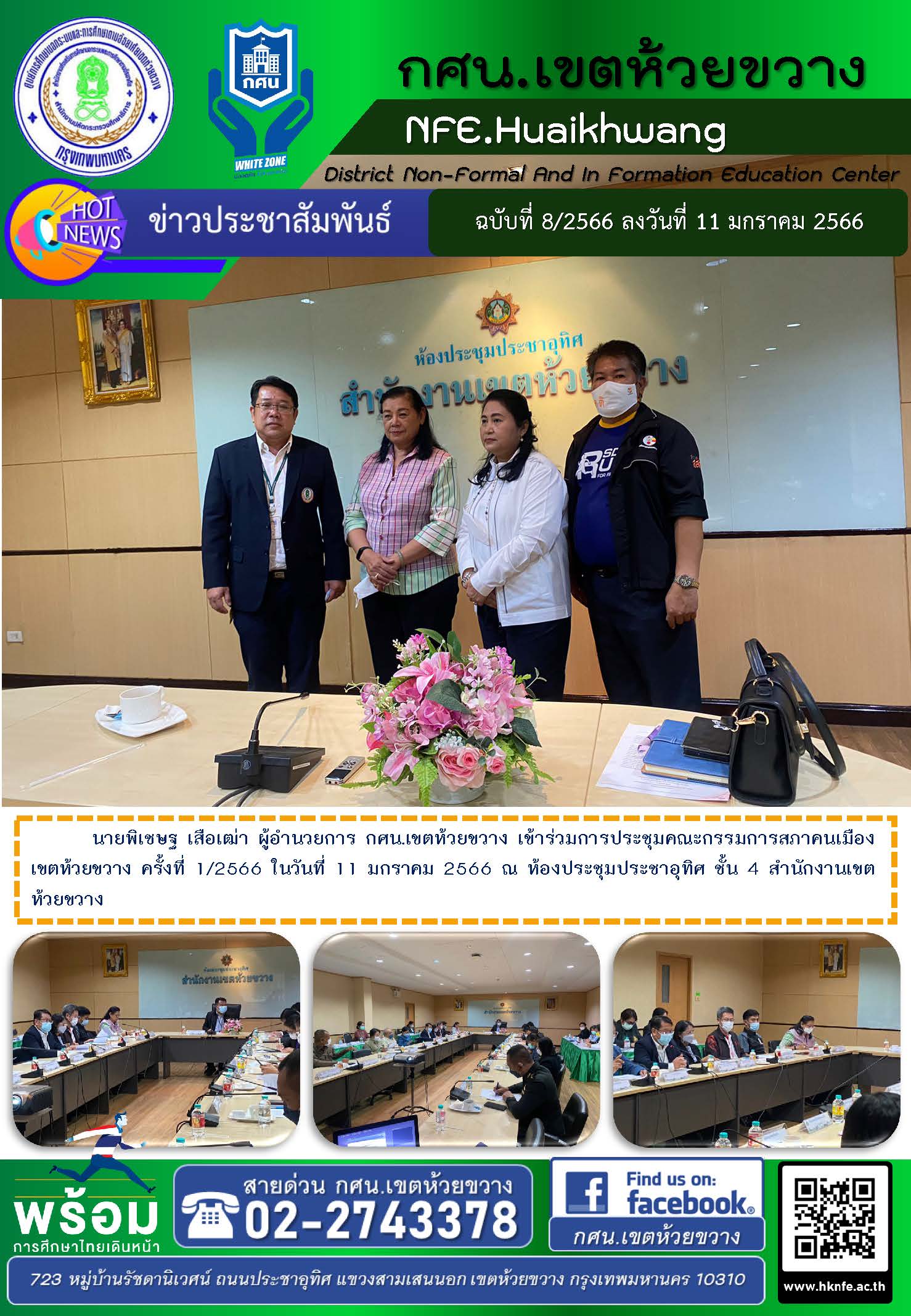 นายพิเชษฐ เสือเฒ่า ผู้อำนวยการ กศน.เขตห้วยขวาง เข้าร่วมการประชุมคณะกรรมการสภาคนเมืองเขตห้วยขวาง ครั้งที่ 1/2566 ในวันที่ 11 มกราคม 2566 ณ ห้องประชุมประชาอุทิศ ชั้น 4 สำนักงานเขตห้วยขวาง