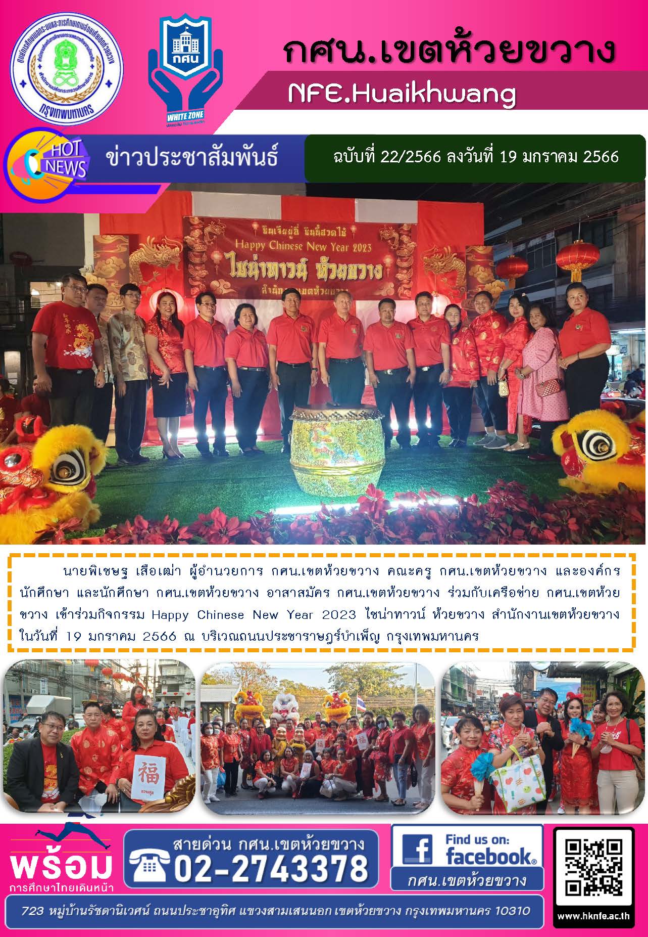 นายพิเชษฐ เสือเฒ่า ผู้อำนวยการ กศน.เขตห้วยขวาง คณะครู กศน.เขตห้วยขวาง และองค์กรนักศึกษา และนักศึกษา กศน.เขตห้วยขวาง อาสาสมัคร กศน.เขตห้วยขวาง ร่วมกับเครือข่าย กศน.เขตห้วยขวาง เข้าร่วมกิจกรรม Happy Chinese New Year 2023 ไชน่าทาวน์ ห้วยขวาง สำนักงานเขตห้วยขวาง ในวันที่ 19 มกราคม 2566 ณ บริเวณถนนประชาราษฎร์บำเพ็ญ กรุงเทพมหานคร