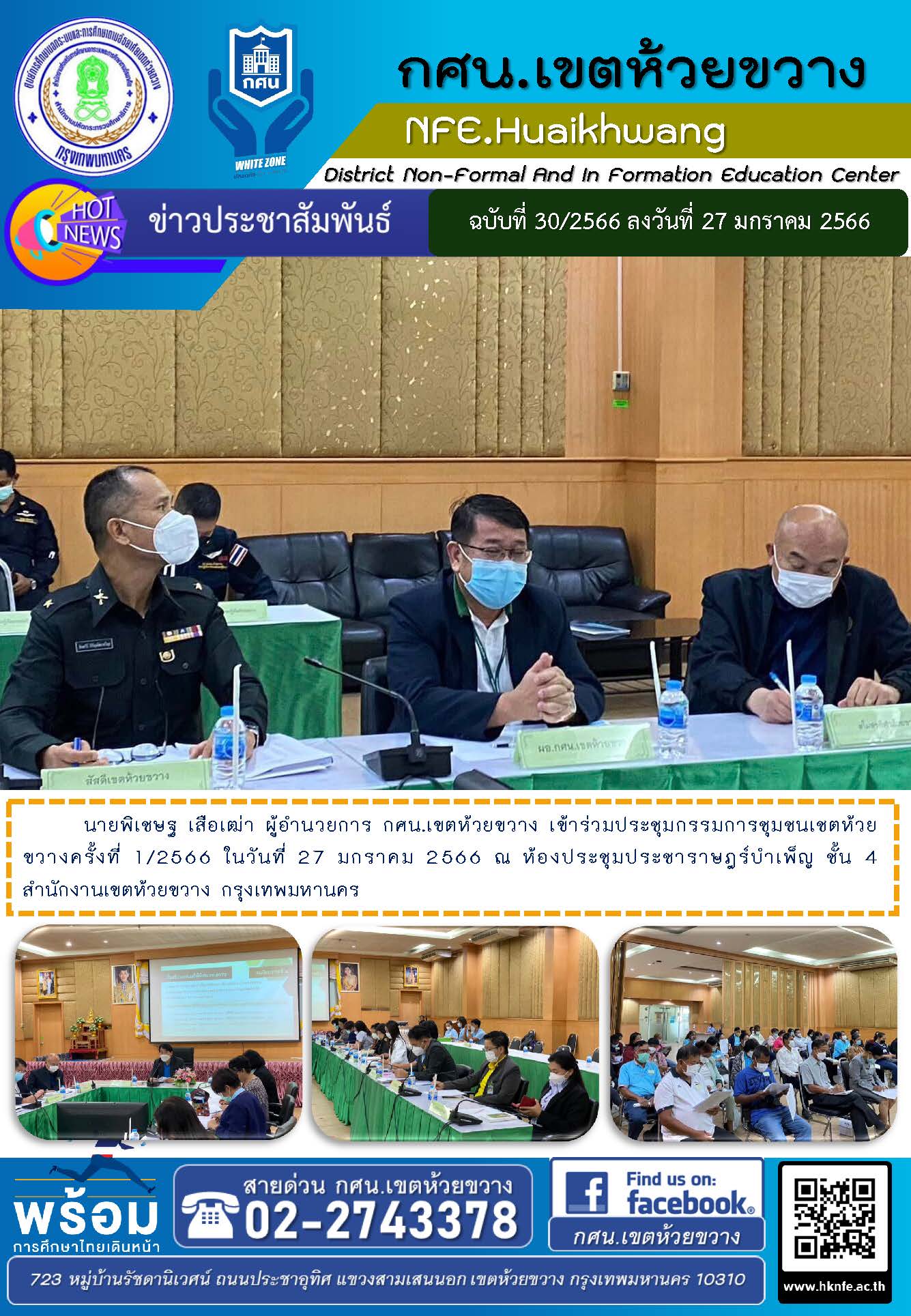 นายพิเชษฐ เสือเฒ่า ผู้อำนวยการ กศน.เขตห้วยขวาง เข้าร่วมประชุมกรรมการชุมชนเขตห้วยขวางครั้งที่ 1/2566 ในวันที่ 27 มกราคม 2566 ณ ห้องประชุมประชาราษฎร์บำเพ็ญ ชั้น 4 สำนักงานเขตห้วยขวาง กรุงเทพมหานคร