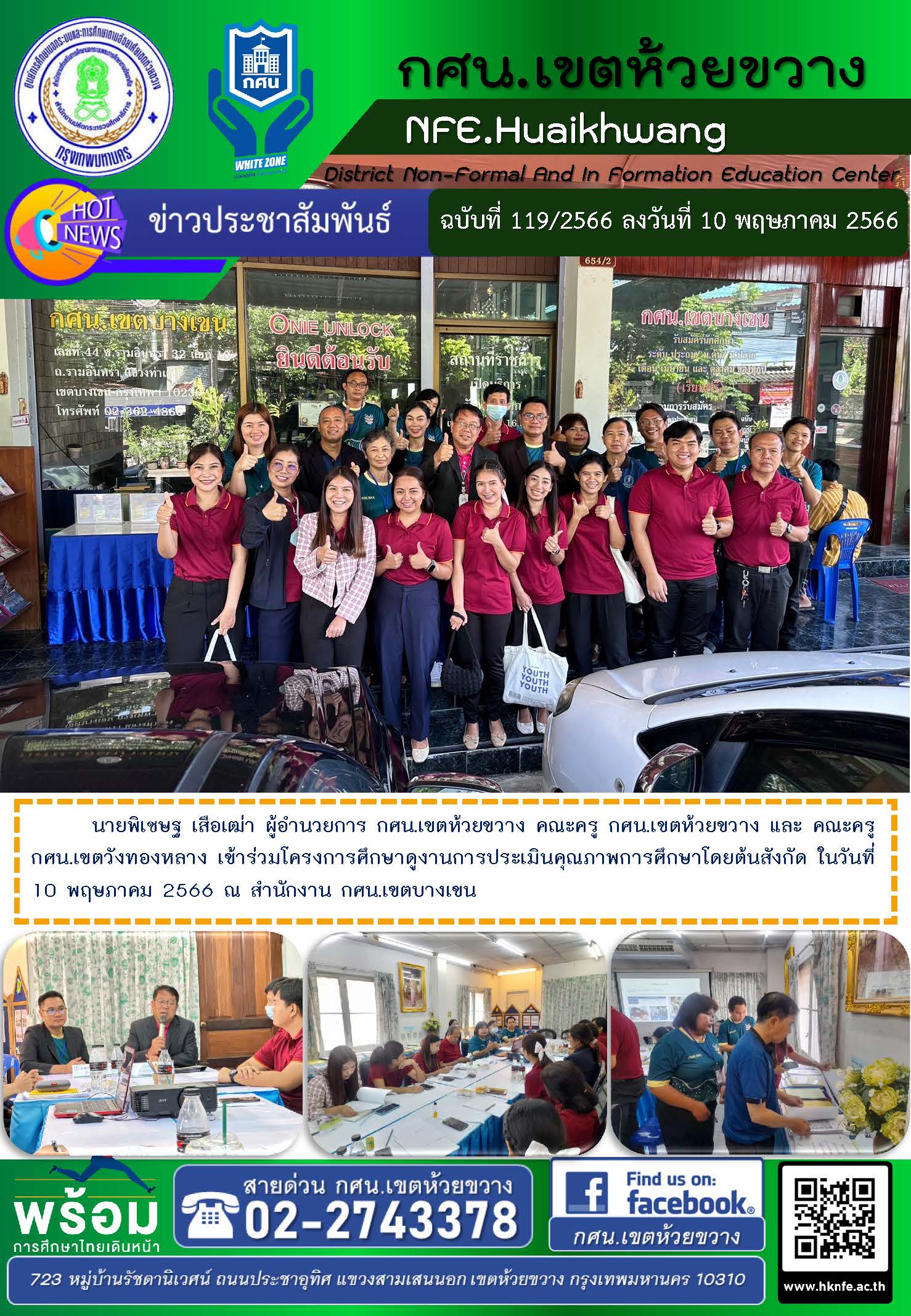นายพิเชษฐ เสือเฒ่า ผู้อำนวยการ กศน.เขตห้วยขวาง คณะครู กศน.เขตห้วยขวาง และ คณะครู กศน.เขตวังทองหลาง เข้าร่วมโครงการศึกษาดูงานการประเมินคุณภาพการศึกษาโดยต้นสังกัด ในวันที่ 10 พฤษภาคม 2566 ณ สำนักงาน กศน.เขตบางเขน