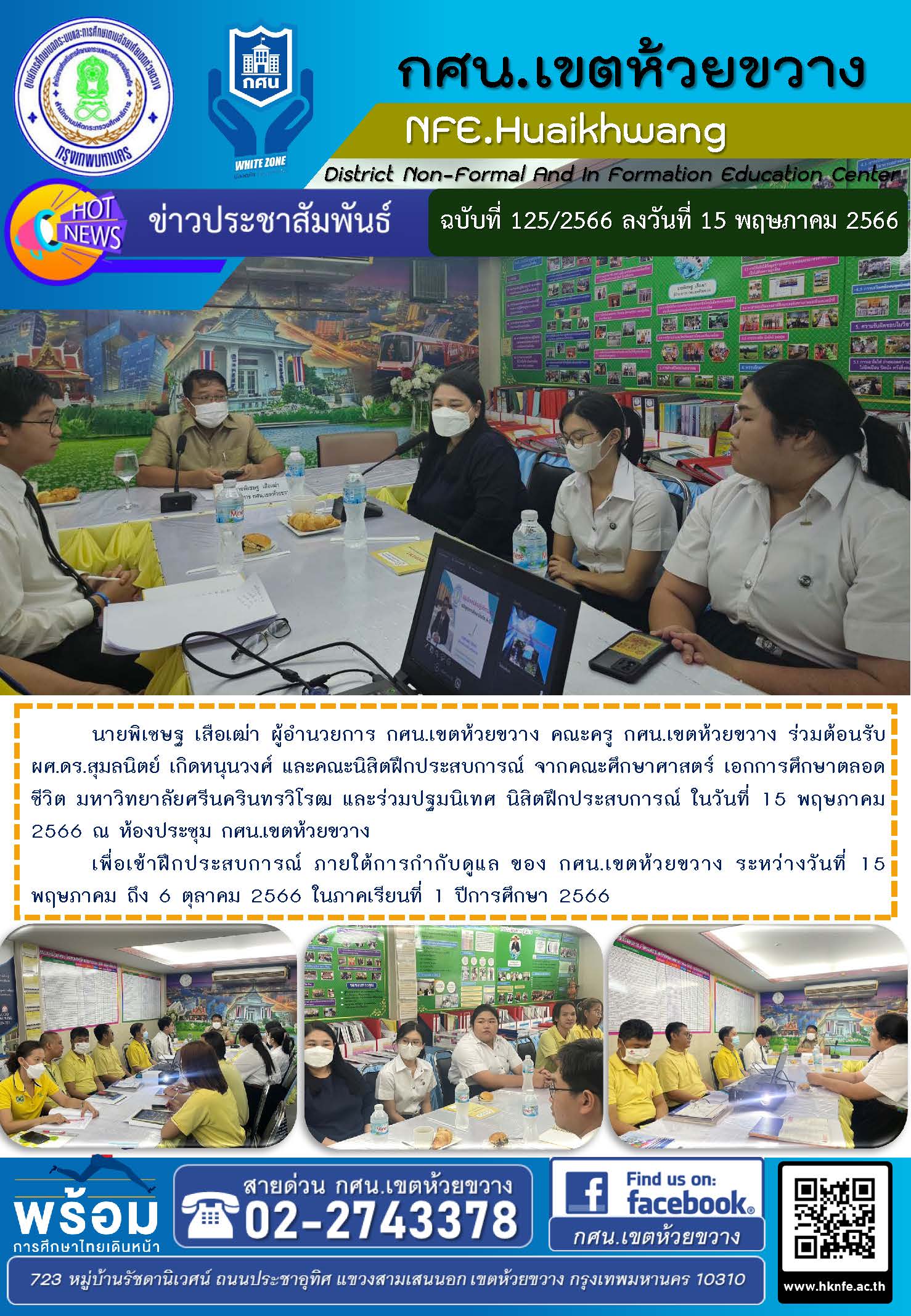 เพื่อเข้าฝึกประสบการณ์ ภายใต้การกำกับดูแล ของ กศน.เขตห้วยขวาง ระหว่างวันที่ 15 พฤษภาคม ถึง 6 ตุลาคม 2566 ในภาคเรียนที่ 1 ปีการศึกษา 2566