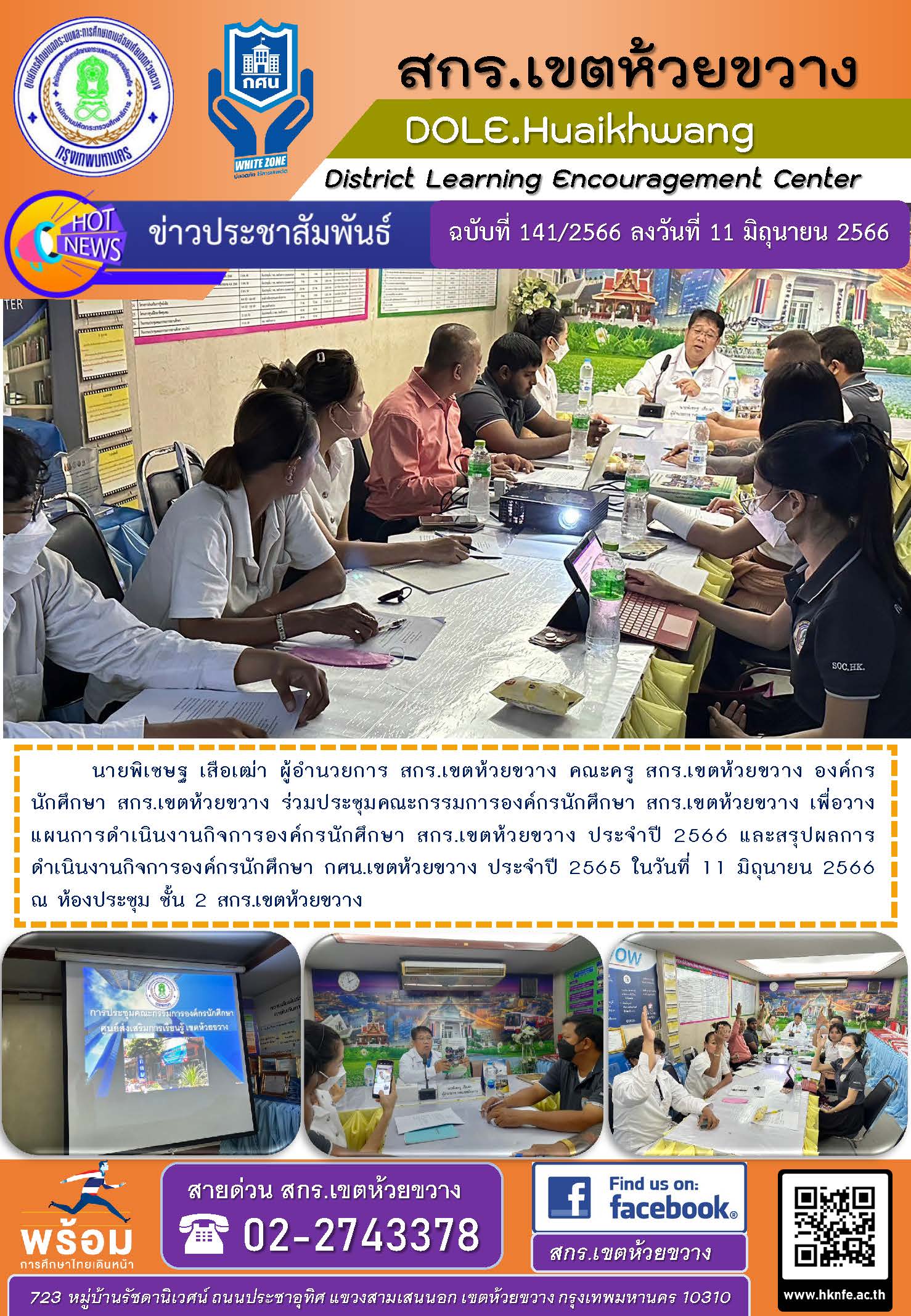 นายพิเชษฐ เสือเฒ่า ผู้อำนวยการ สกร.เขตห้วยขวาง คณะครู สกร.เขตห้วยขวาง องค์กรนักศึกษา สกร.เขตห้วยขวาง ร่วมประชุมคณะกรรมการองค์กรนักศึกษา สกร.เขตห้วยขวาง เพื่อวางแผนการดำเนินงานกิจการองค์กรนักศึกษา สกร.เขตห้วยขวาง ประจำปี 2566 และสรุปผลการดำเนินงานกิจการองค์กรนักศึกษา กศน.เขตห้วยขวาง ประจำปี 2565 ในวันที่ 11 มิถุนายน 2566 ณ ห้องประชุม ชั้น 2 สกร.เขตห้วยขวาง