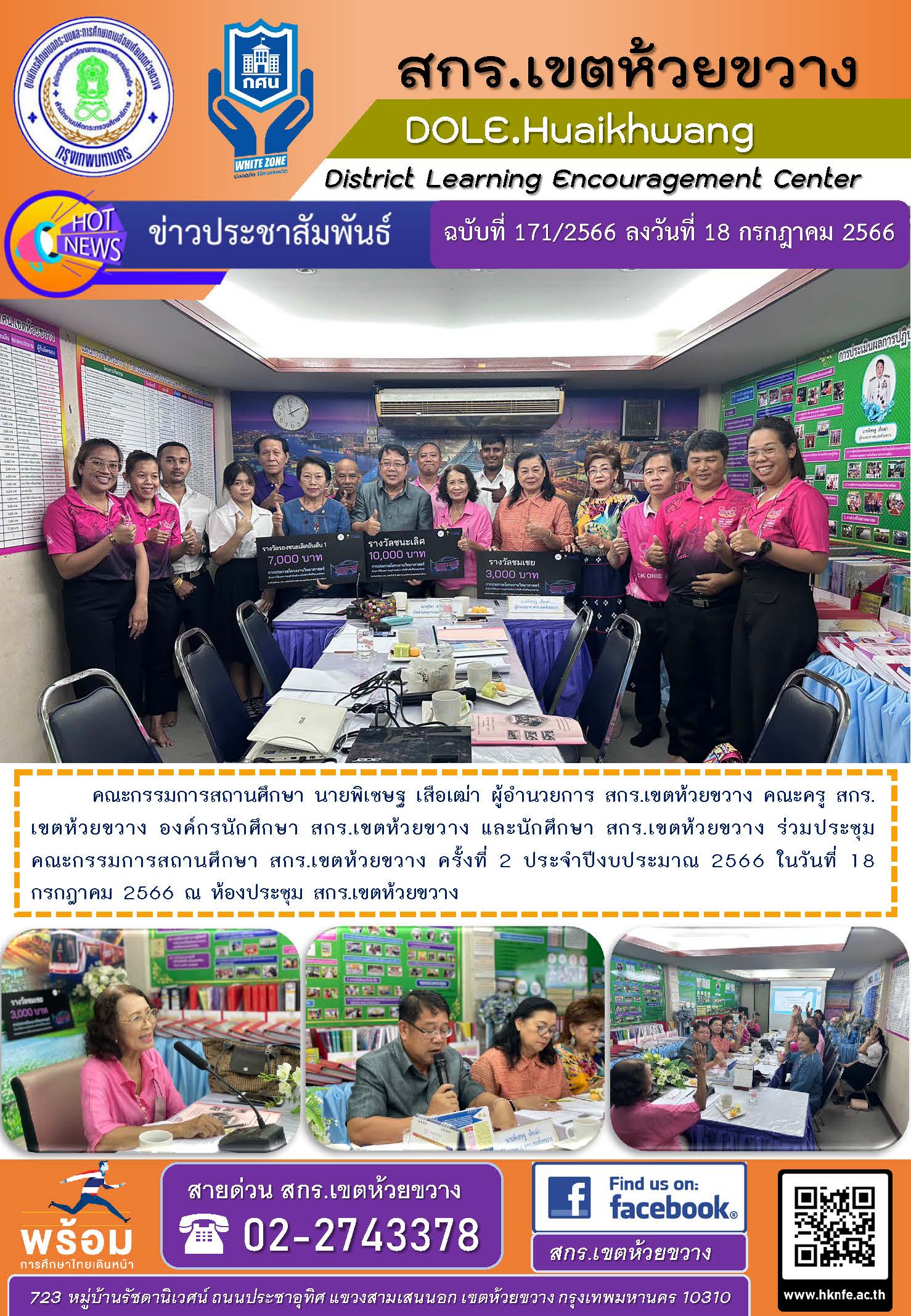 คณะกรรมการสถานศึกษา นายพิเชษฐ เสือเฒ่า ผู้อำนวยการ สกร.เขตห้วยขวาง คณะครู สกร.เขตห้วยขวาง องค์กรนักศึกษา สกร.เขตห้วยขวาง และนักศึกษา สกร.เขตห้วยขวาง ร่วมประชุมคณะกรรมการสถานศึกษา สกร.เขตห้วยขวาง ครั้งที่ 2 ประจำปีงบประมาณ 2566 ในวันที่ 18 กรกฎาคม 2566 ณ ห้องประชุม สกร.เขตห้วยขวาง