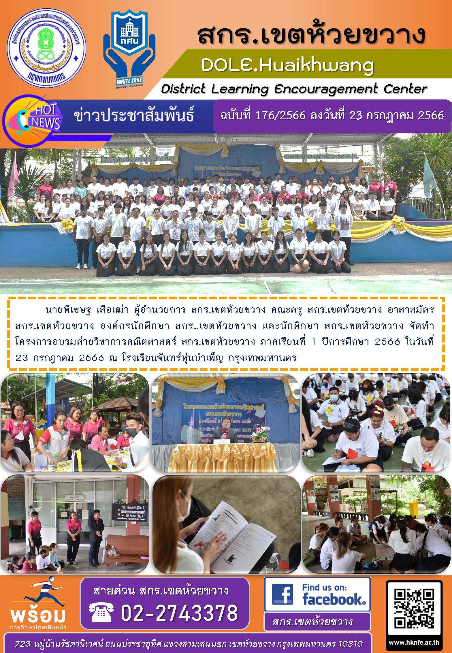 นายพิเชษฐ เสือเฒ่า ผู้อำนวยการ สกร.เขตห้วยขวาง คณะครู สกร.เขตห้วยขวาง อาสาสมัคร สกร.เขตห้วยขวาง องค์กรนักศึกษา สกร..เขตห้วยขวาง และนักศึกษา สกร.เขตห้วยขวาง จัดทำโครงการอบรมค่ายวิชาการคณิตศาสตร์ สกร.เขตห้วยขวาง ภาคเรียนที่ 1 ปีการศึกษา 2566 ในวันที่ 23 กรกฎาคม 2566 ณ โรงเรียนจันทร์หุ่นบำเพ็ญ กรุงเทพมหานคร