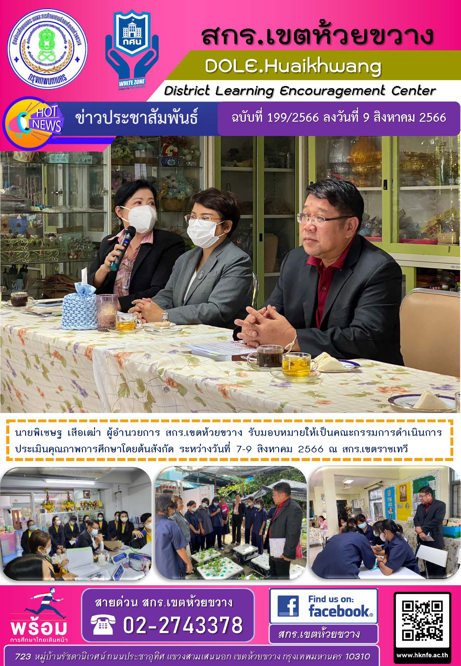 นายพิเชษฐ เสือเฒ่า ผู้อำนวยการ สกร.เขตห้วยขวาง รับมอบหมายให้เป็นคณะกรรมการดำเนินการประเมินคุณภาพการศึกษาโดยต้นสังกัด ระหว่างวันที่ 7-9 สิงหาคม 2566 ณ สกร.เขตราชเทวี