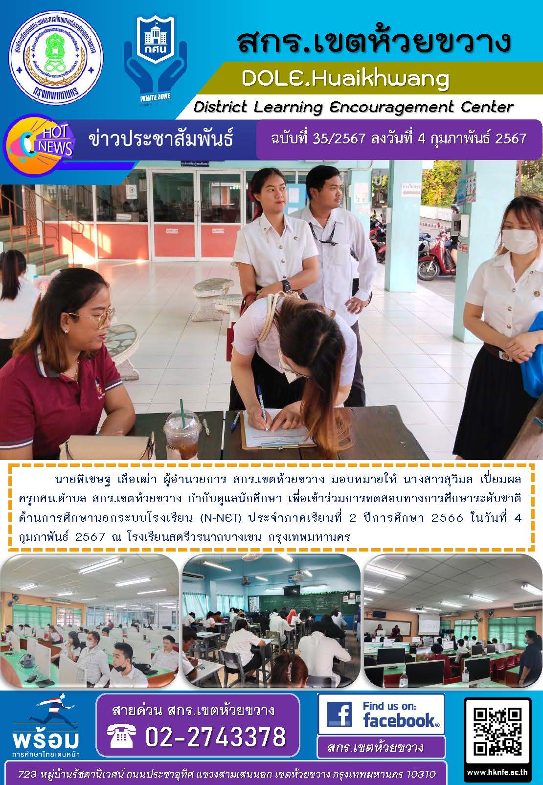 นายพิเชษฐ เสือเฒ่า ผู้อำนวยการ สกร.เขตห้วยขวาง มอบหมายให้ นางสาวสุวิมล เปี่ยมผล ครูกศน.ตำบล สกร.เขตห้วยขวาง กำกับดูแลนักศึกษา เพื่อเข้าร่วมการทดสอบทางการศึกษาระดับชาติด้านการศึกษานอกระบบโรงเรียน (N-NET) ประจำภาคเรียนที่ 2 ปีการศึกษา 2566 ในวันที่ 4 กุมภาพันธ์ 2567 ณ โรงเรียนสตรีวรนาถบางเขน กรุงเทพมหานคร