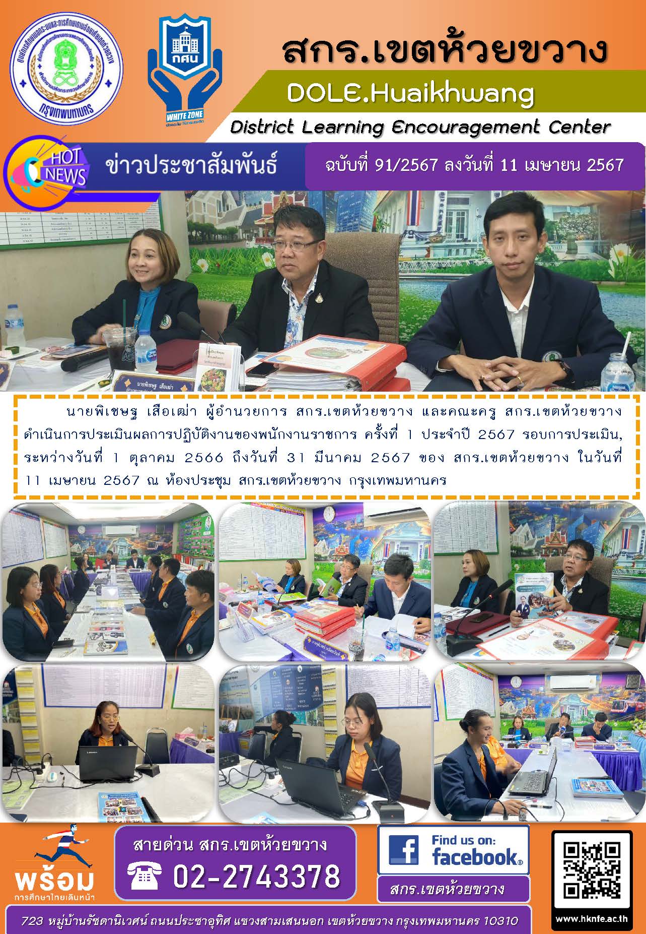 นายพิเชษฐ เสือเฒ่า ผู้อำนวยการ สกร.เขตห้วยขวาง และคณะครู สกร.เขตห้วยขวาง ดำเนินการประเมินผลการปฏิบัติงานของพนักงานราชการ ครั้งที่ 1 ประจำปี 2567 รอบการประเมิน, ระหว่างวันที่ 1 ตุลาคม 2566 ถึงวันที่ 31 มีนาคม 2567 ของ สกร.เขตห้วยขวาง ในวันที่ 11 เมษายน 2567 ณ ห้องประชุม สกร.เขตห้วยขวาง กรุงเทพมหานคร