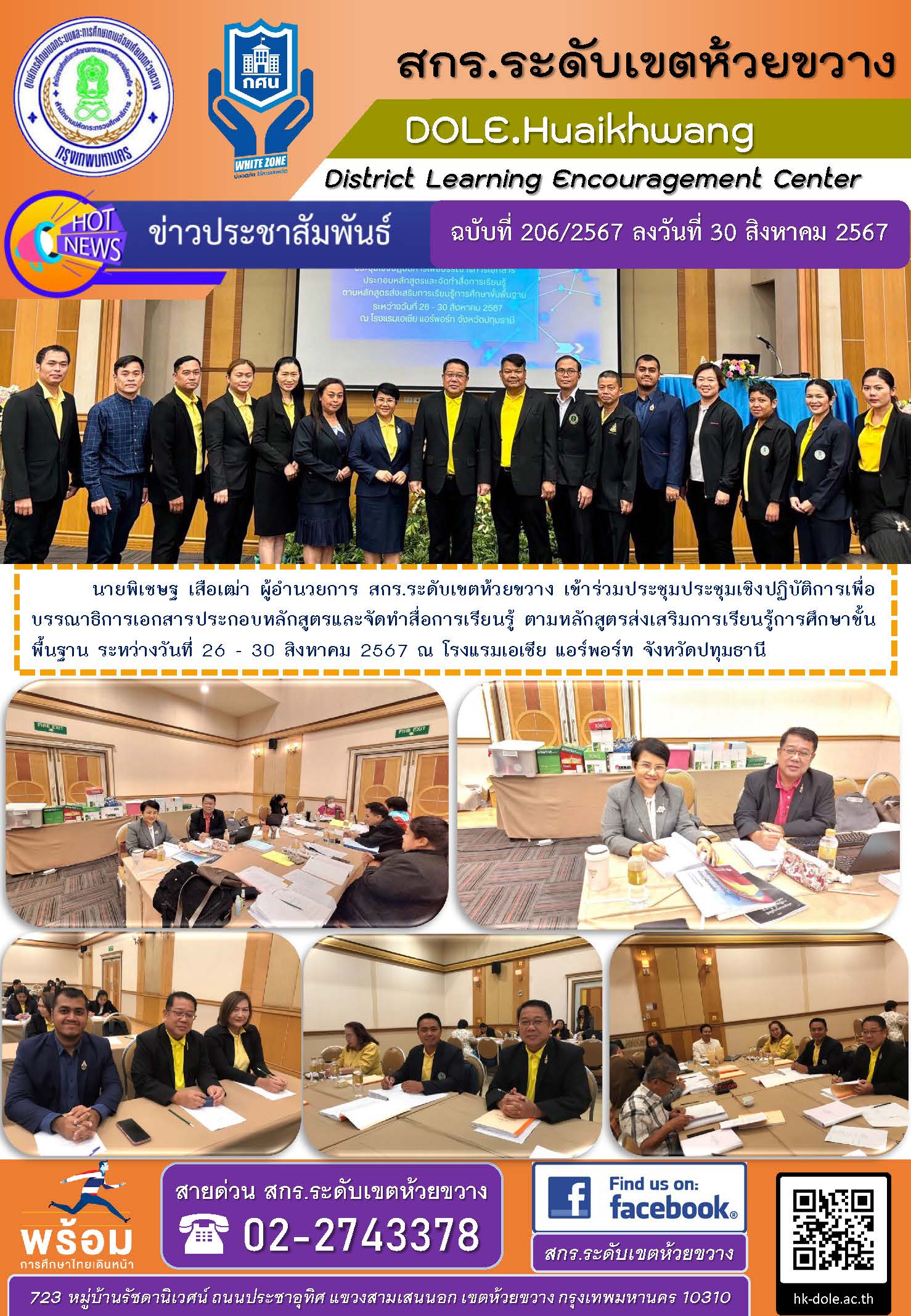 นายพิเชษฐ เสือเฒ่า ผู้อำนวยการ สกร.ระดับเขตห้วยขวาง เข้าร่วมประชุมประชุมเชิงปฏิบัติการเพื่อบรรณาธิการเอกสารประกอบหลักสูตรและจัดทำสื่อการเรียนรู้ ตามหลักสูตรส่งเสริมการเรียนรู้การศึกษาขั้นพื้นฐาน ระหว่างวันที่ 26 – 30 สิงหาคม 2567 ณ โรงแรมเอเชีย แอร์พอร์ท จังหวัดปทุมธานี