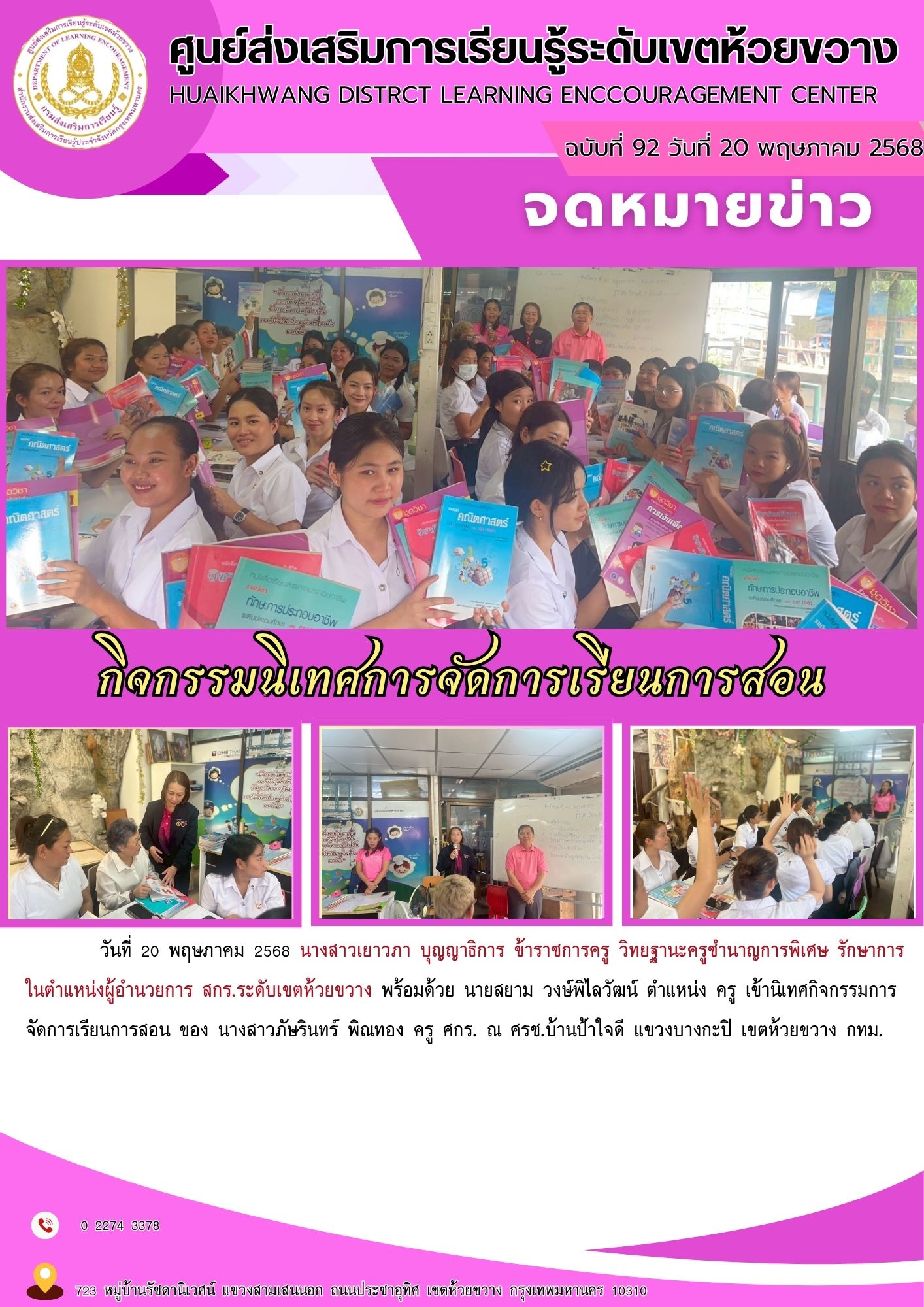 ในตำแหน่งผู้อำนวยการ สกร.ระดับเขตห้วยขวาง พร้อมด้วย นายสยาม วงษ์พิไลวัฒน์ ตำแหน่ง ครู เข้านิเทศกิจกรรมการจัดการเรียนการสอน ของ นางสาวภัษรินทร์ พิณทอง ครู ศกร. ณ ศรช.บ้านป้าใจดี แขวงบางกะปิ เขตห้วยขวาง กทม.
