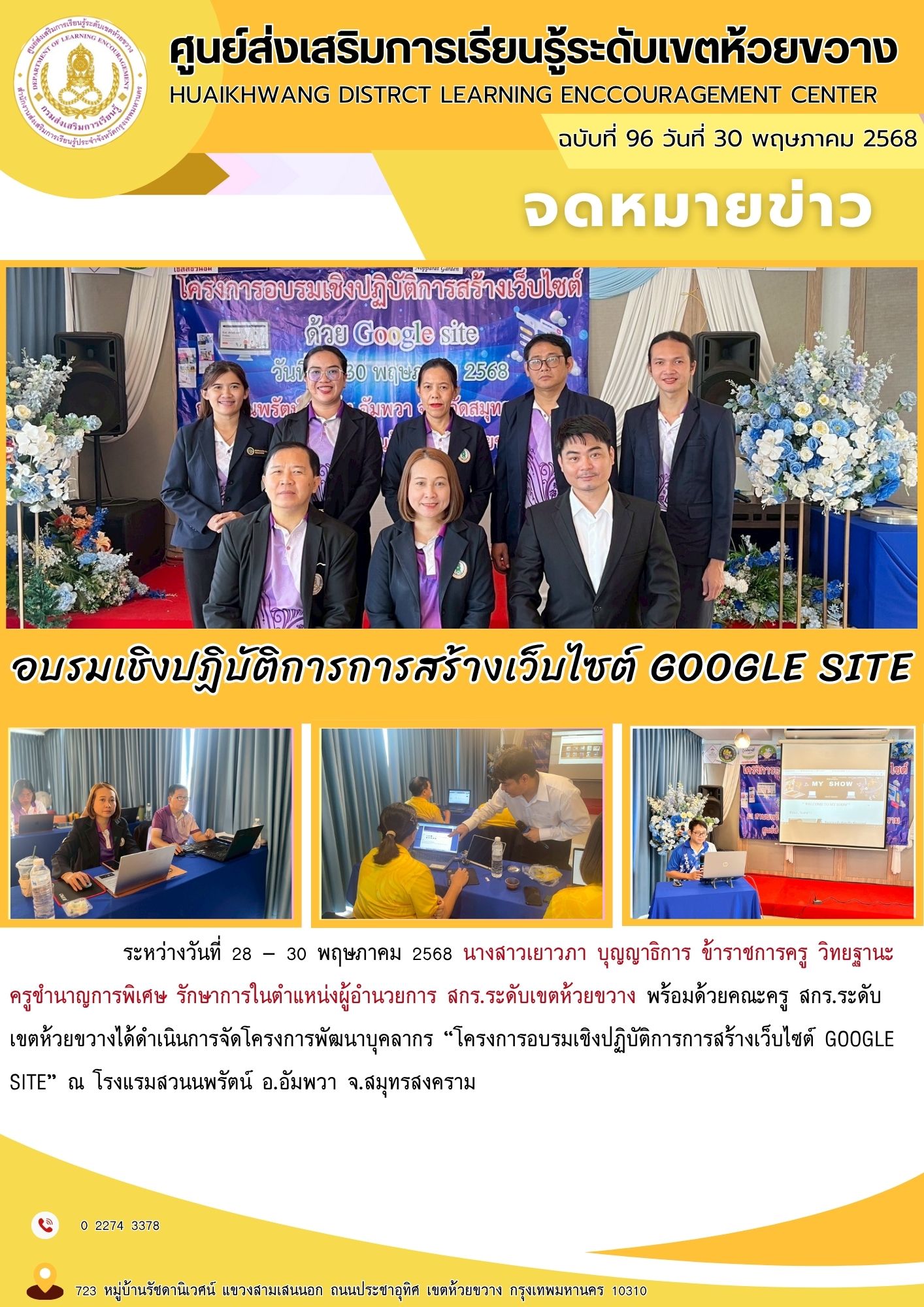 พร้อมด้วยคณะครู สกร.ระดับเขตห้วยขวางได้ดำเนินการจัดโครงการพัฒนาบุคลากร “โครงการอบรมเชิงปฏิบัติการการสร้างเว็บไซต์ Google Site” ณ โรงแรมสวนนพรัตน์ อ.อัมพวา จ.สมุทรสงคราม