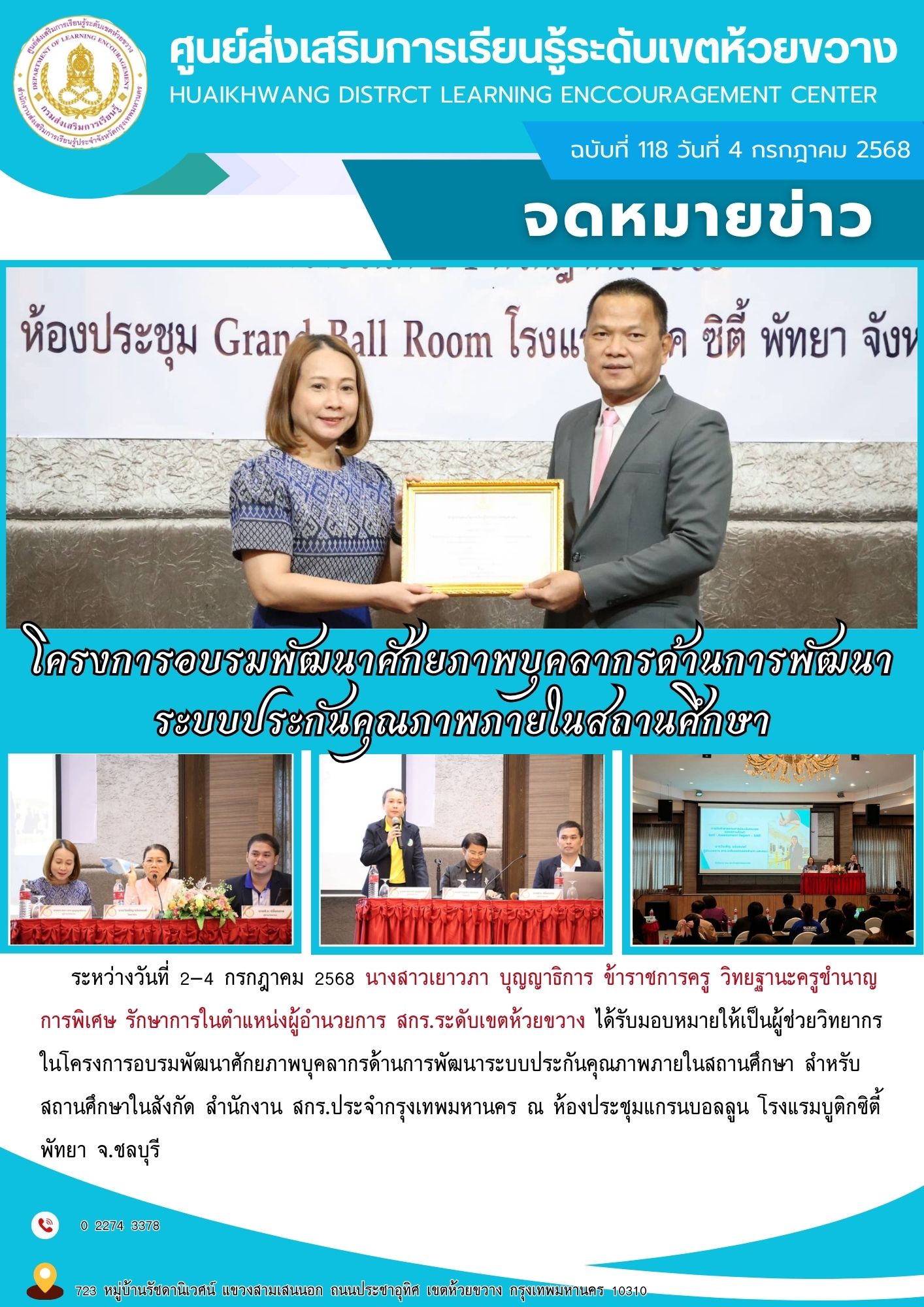 การพิเศษ รักษาการในตำแหน่งผู้อำนวยการ สกร.ระดับเขตห้วยขวาง ได้รับมอบหมายให้เป็นผู้ช่วยวิทยากร