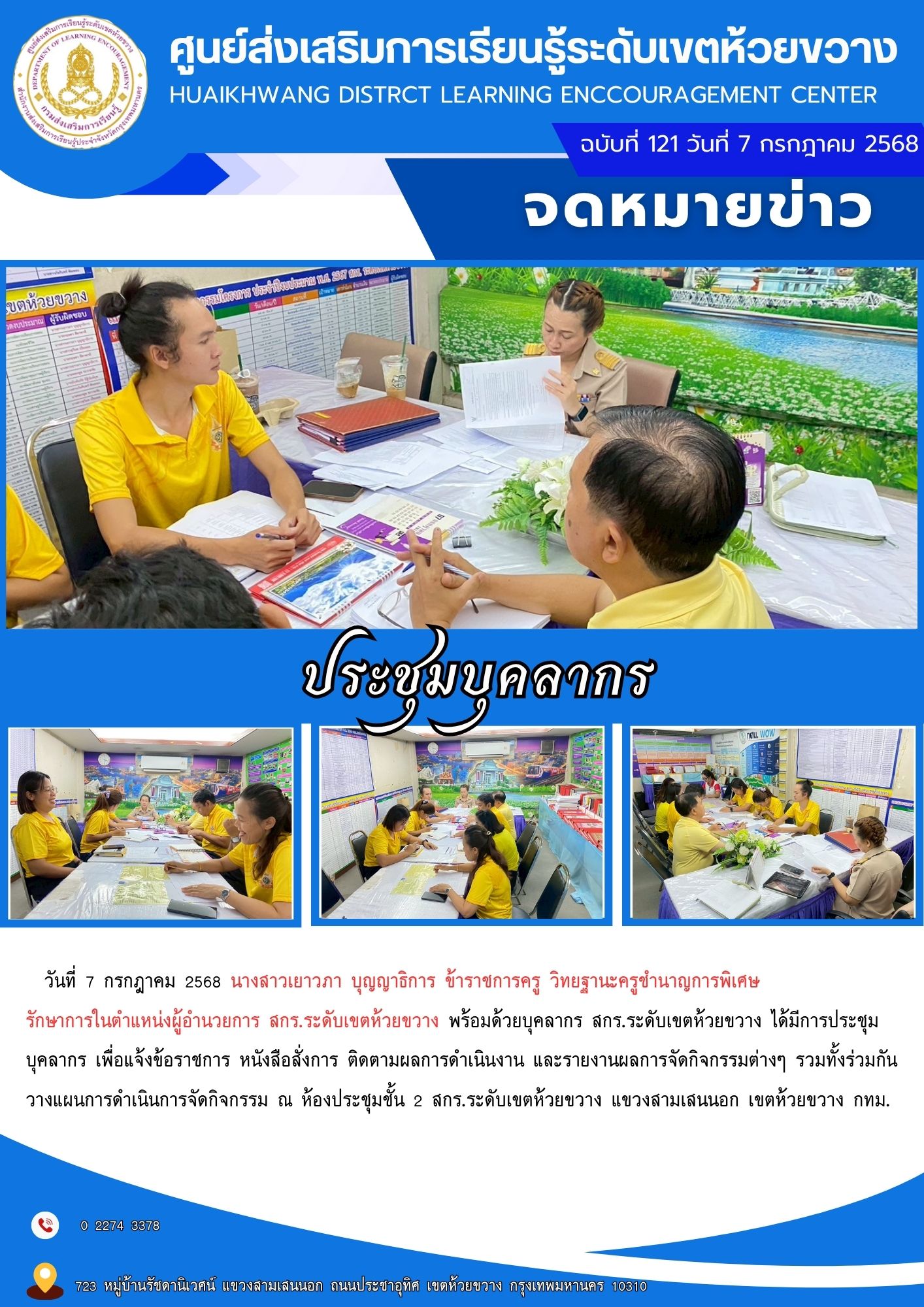 รักษาการในตำแหน่งผู้อำนวยการ สกร.ระดับเขตห้วยขวาง พร้อมด้วยคณะครู สกร.ระดับเขตห้วยขวาง ดำเนินการจัดโครงการพัฒนาทักษะด้านคณิตศาสตร์ ของนักศึกษา สกร.ระดับเขตห้วยขวาง ณ โรงเรียนจันทร์หุ่นบำเพ็ญ แขวงสามเสนนอก เขตห้วยขวาง กทม.
