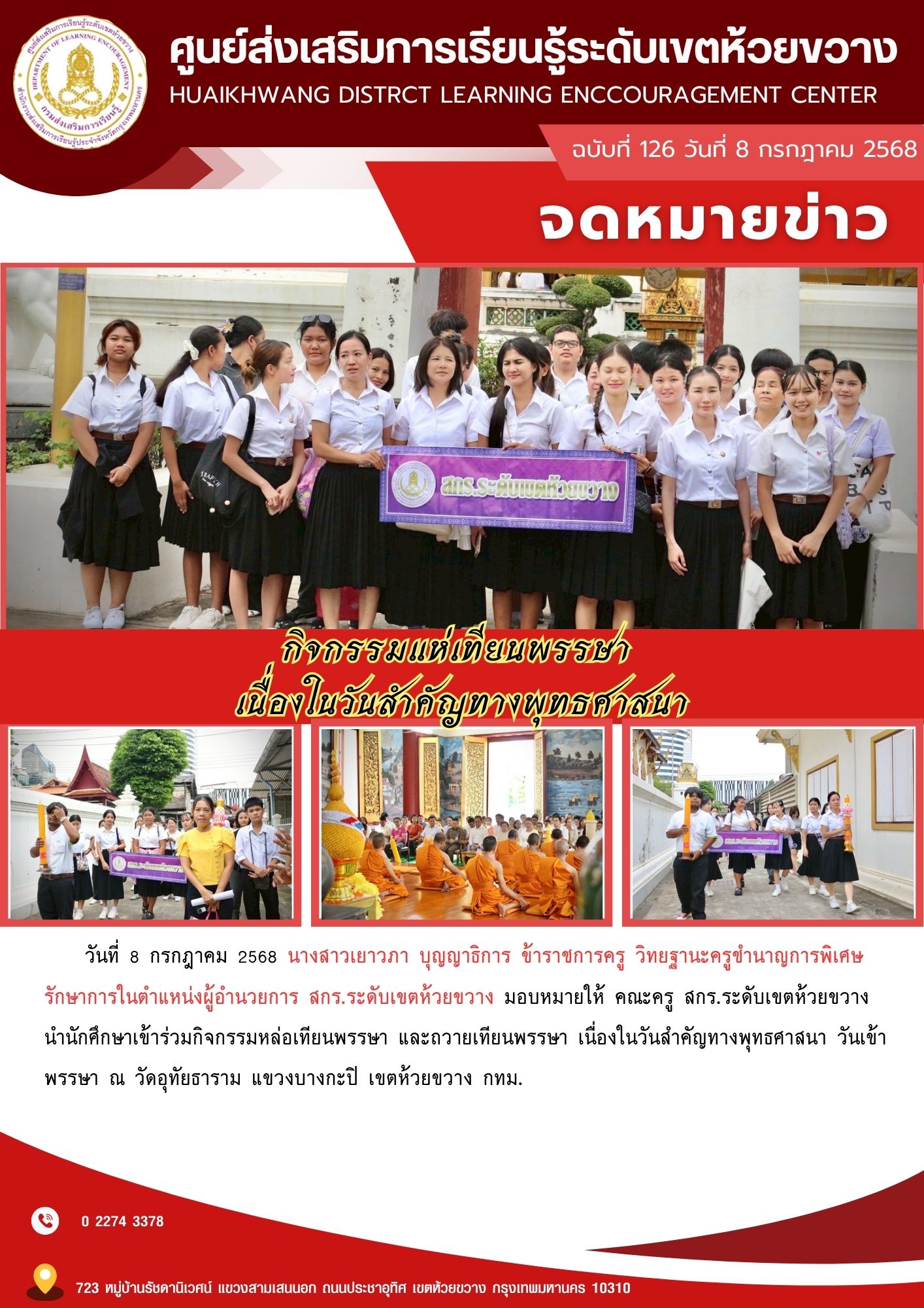 นำนักศึกษาเข้าร่วมกิจกรรมหล่อเทียนพรรษา และถวายเทียนพรรษา เนื่องในวันสำคัญทางพุทธศาสนา วันเข้าพรรษา ณ วัดอุทัยธาราม แขวงบางกะปิ เขตห้วยขวาง กทม.