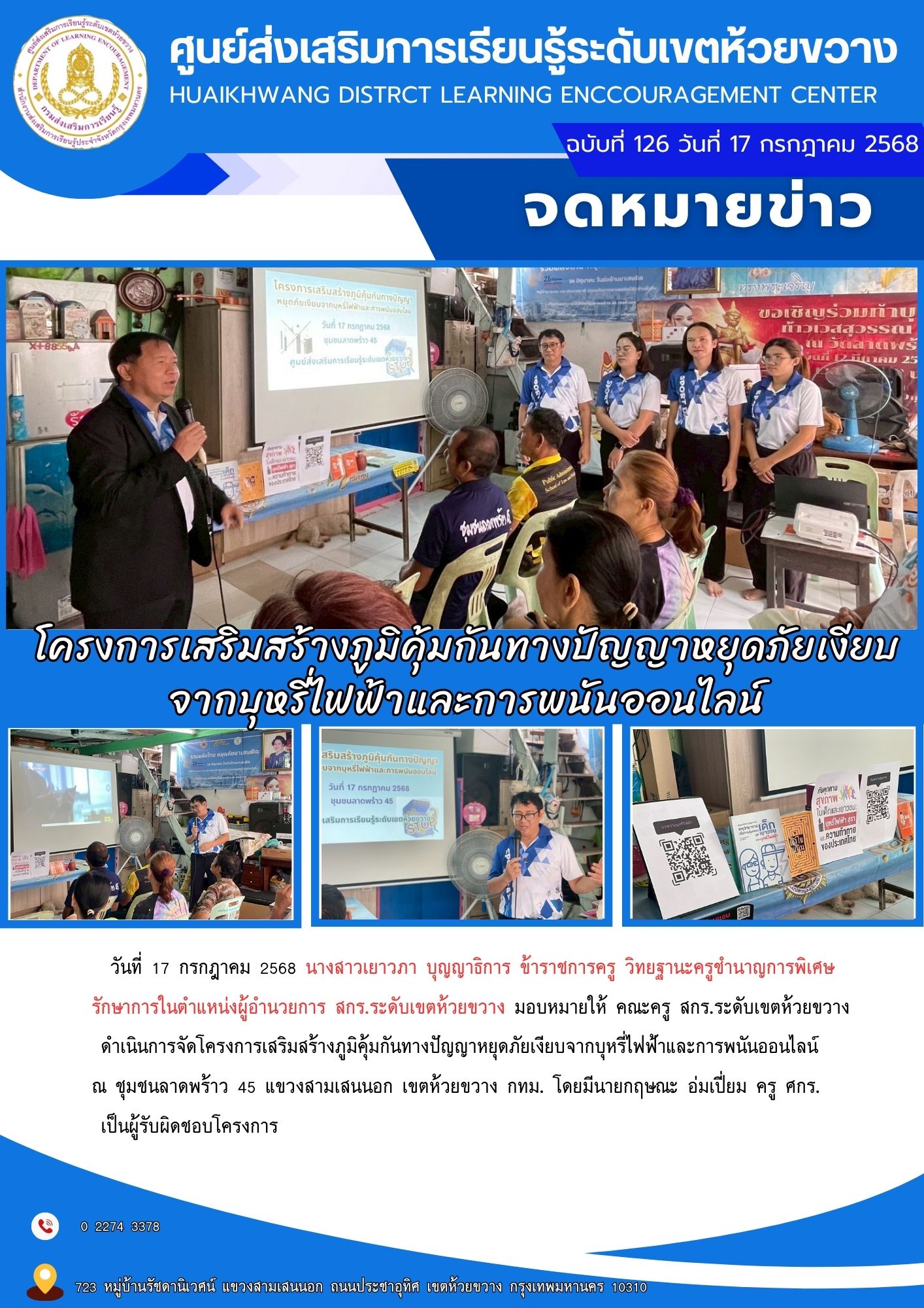 รักษาการในตำแหน่งผู้อำนวยการ สกร.ระดับเขตห้วยขวาง มอบหมายให้ คณะครู สกร.ระดับเขตห้วยขวาง