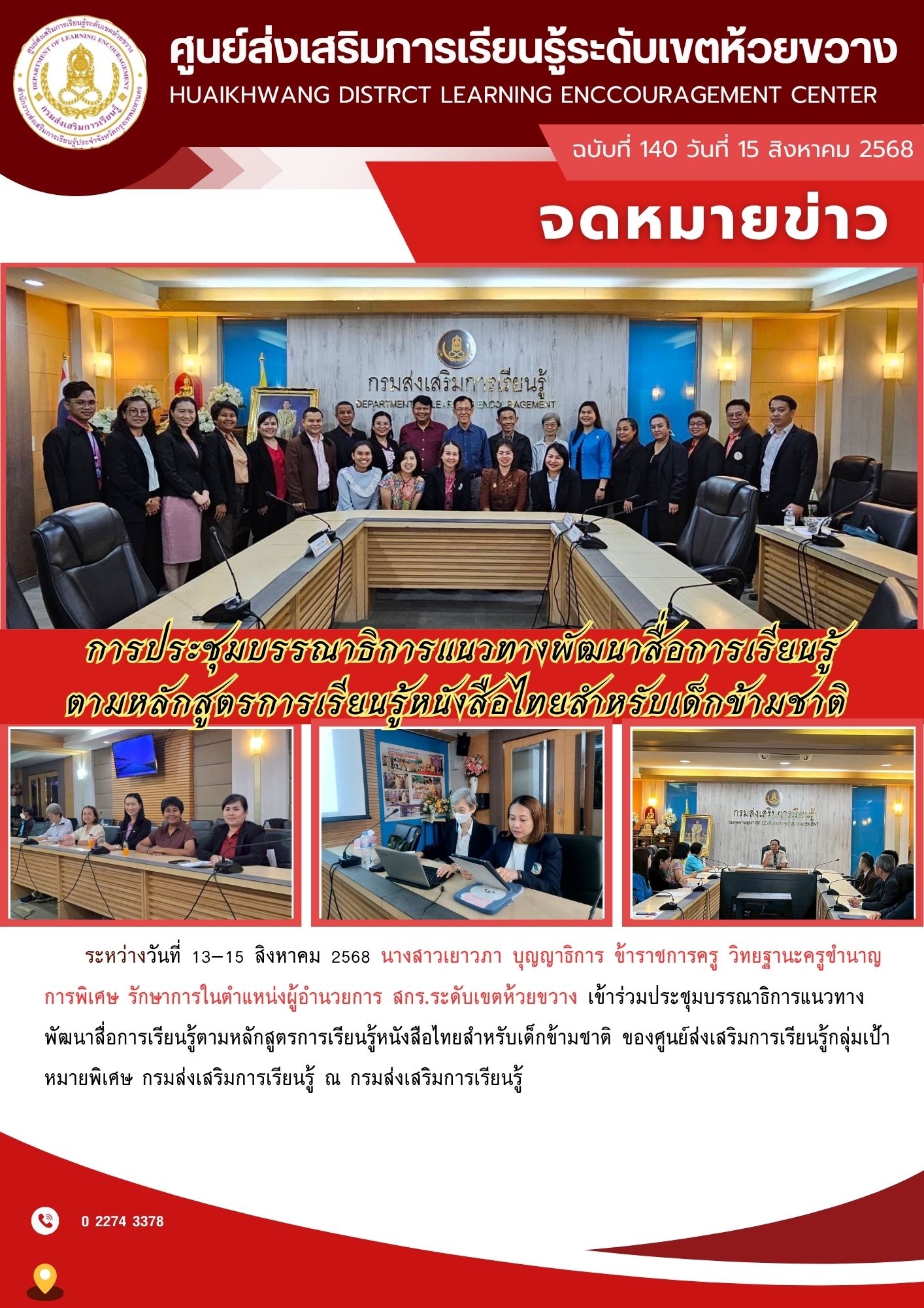 เข้าร่วมประชุมบรรณาธิการแนวทางพัฒนาสื่อการเรียนรู้ตามหลักสูตรการเรียนรู้หนังสือไทยสำหรับเด็กข้ามชาติ ของศูนย์ส่งเสริมการเรียนรู้กลุ่มเป้าหมายพิเศษ กรมส่งเสริมการเรียนรู้ ณ กรมส่งเสริมการเรียนรู้