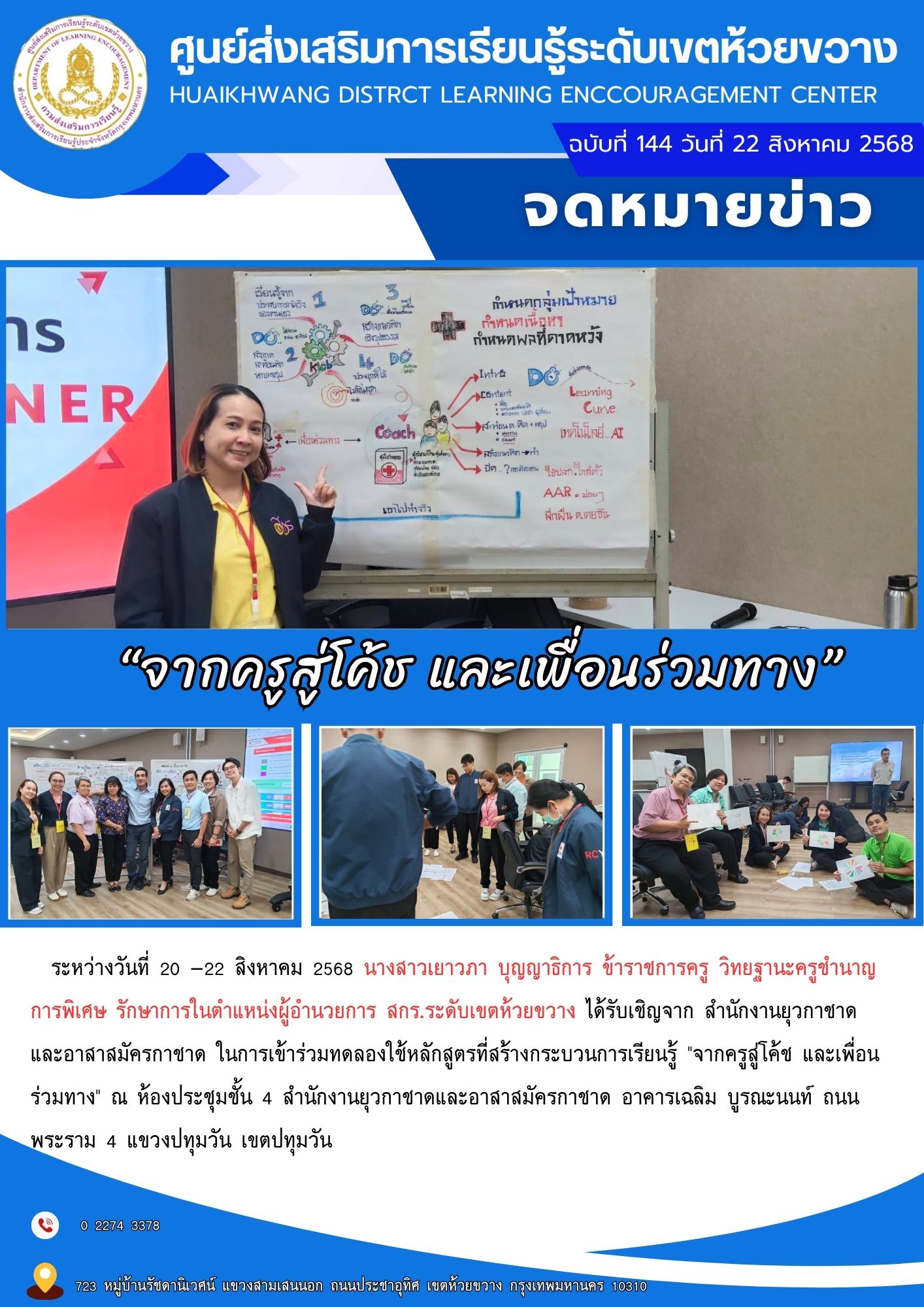 ได้รับเชิญจาก สำนักงานยุวกาชาดและอาสาสมัครกาชาด ในการเข้าร่วมทดลองใช้หลักสูตรที่สร้างกระบวนการเรียนรู้ "จากครูสู่โค้ช และเพื่อนร่วมทาง" ณ ห้องประชุมชั้น 4 สำนักงานยุวกาชาดและอาสาสมัครกาชาด อาคารเฉลิม บูรณะนนท์ ถนนพระราม 4 แขวงปทุมวัน เขตปทุมวัน