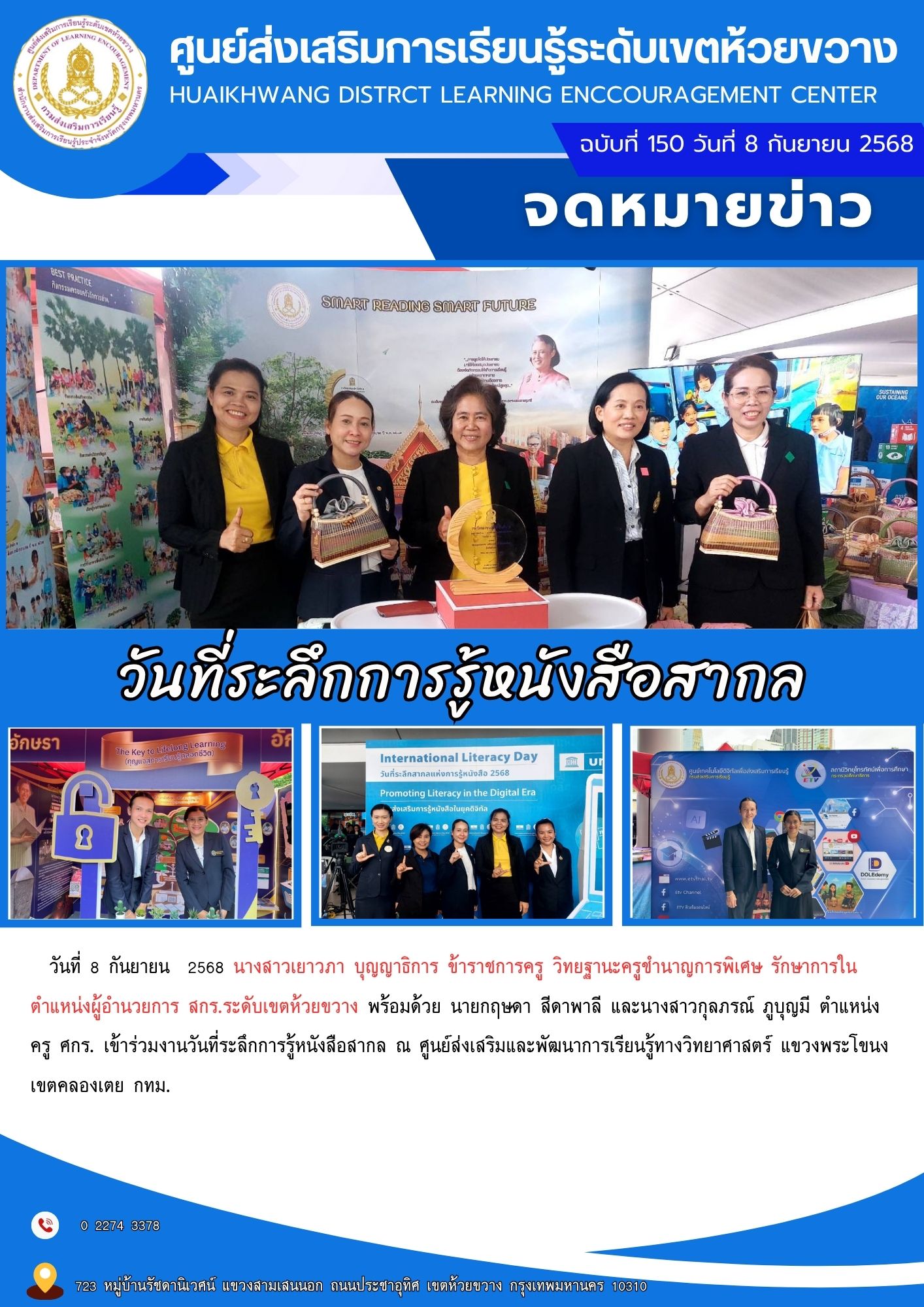 พร้อมด้วย นายกฤษดา สีดาพาลี และนางสาวกุลภรณ์ ภูบุญมี ตำแหน่ง ครู ศกร. เข้าร่วมงานวันที่ระลึกการรู้หนังสือสากล ณ ศูนย์ส่งเสริมและพัฒนาการเรียนรู้ทางวิทยาศาสตร์ แขวงพระโขนง เขตคลองเตย กทม.