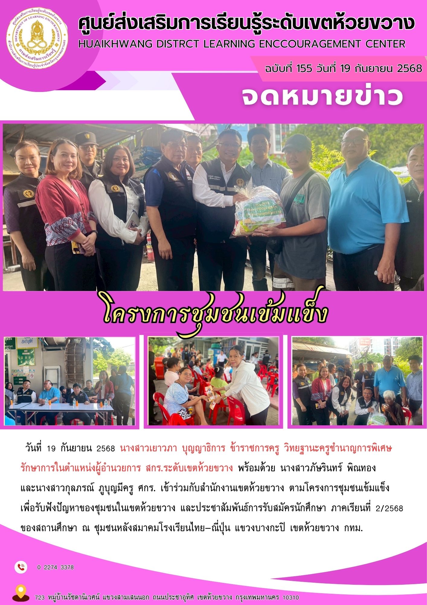 และนางสาวกุลภรณ์ ภูบุญมีครู ศกร. เข้าร่วมกับสำนักงานเขตห้วยขวาง ตามโครงการชุมชนเข้มแข็ง